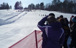 Prior to the races in the judging arena, Peter Franchetti said the helmet was modeled after his son Anthony’s No. 58 football helmet. Anthony, who was the team’s senior captain, said the skis used to be his racing skis until he broke them in a race.