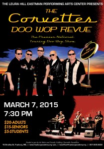 The nationally touring Corvettes are returning to the Leura Hill Eastman Performing Arts Center at Fryeburg Academy, at 7:30 p.m. on Saturday, March 7, for another all-out doo wop celebration. The band’s show and comical stage antics have left many a happy audience screaming for more. Their mission is to preserve and perform the music of the 1950s doo wop era. Some of the great hits you might expect to hear at a Corvettes’ concert include “Come Go With Me,” “Earth Angel,” “Rock Around the Clock,” and many more. Tickets are $20 for adults, $15 for seniors, and $5 for children. Preorder online at www.fryeburgacademy.org/tickets or by calling the box office at 207-935-9232. The LHE/PAC is located at 18 Bradley St. in Fryeburg.