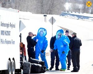 Emergency response crews that had donned special protective suits to address the problem began the decontamination process Monday evening.