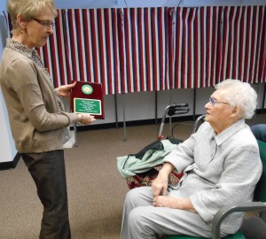 LIVERMORE FALLS — Hyla Friedman, 96, week received a plaque this week in commemoration of being the Boston Post Cane recipient as the town’s eldest resident.