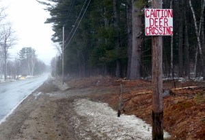 He has posted large signs along Route 120, alerting drivers to slow down for deer crossing the road to reach his feed.