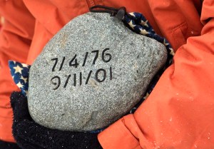 Each hiker carefully placed a stone engraved with a name or initials and a date into their packs. The stones, all unique in size and shape, were carefully chosen by the families of Maine fallen heroes as part of The Summit Project.