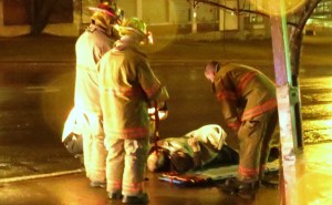 The unidentified male was struck around 9:40 p.m. and was lying on the sidewalk as Lewiston police, fire and United Ambulance personnel arrived at the scene. He appeared conscious and responsive as officers spoke to him. He was placed on a backboard and taken to a hospital.