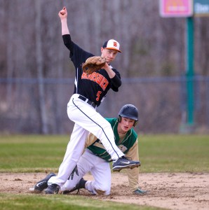 RUMFORD — Senior pitcher Kaine Hutchins helped himself on offense with a two-run double in the first inning as Dirigo collected an 8-5 win over Mountain Valley in MVC baseball action Monday afternoon.