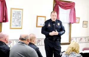 He teared up at the beginning of his comments after he saw that every full-time employee in the department — sans one officer who’s having arm surgery Tuesday morning — sat in the meeting room in the Town Office to support him.