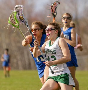 Junior Kristina Blais led the offensive output for the Blue Devils with five goals and two assists in the 11-2 victory over the Oxford Hills Vikings. Emily Brochu chipped in with a hat trick and two assists, while Lauren Lecompte had a pair of goals. Allison Frechette had a goal and an assist in the victory.
