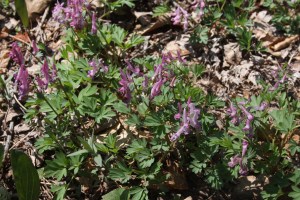 There’s the bloodroot with simple, white flowers, and the green, leafy trillium, which has yet to flower and is spread by ants carrying the seeds up the hill, Perry said. And don’t forget about the pulmonaria, also known as lungwort, with its delicate pink and purple flowers and speckled leaves.