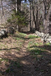 On an impromptu tour of the garden Monday, Perry pointed out a number of the wild plants growing along the trail, which leads up the hill and to an open field that was once a pasture. They included the curly, fuzzy-looking green ostrich ferns, better known as fiddleheads, which people gather and eat.