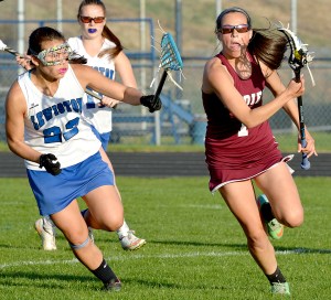 Fran Haines gave Edward Little the lead with 13:05 to play in the first half after scooping up a ground ball and firing the ball past Lewiston keeper Paige Fontaine.