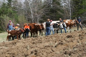 Tim and Sue Lambert knew their friend Robert Sillanpaa had a pair of working steers and asked if he could harrow their farm field for planting. He agreed but asked if he could invite members of the state Farm Steer and Ox Club to help with the effort. The Lamberts agreed, and on Saturday morning, six pairs of working steers and oxen arrived at the Lamberts’ front door.