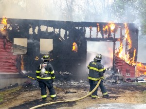 The fire was in the three-story barn owned by Jim and Katy Sperl, whose home was nearby. A vehicle was stored in the day-basement, with a woodworking shop on the second floor and an office on the third. All of it was destroyed.