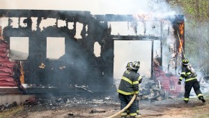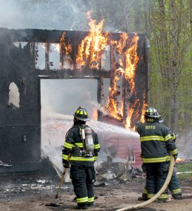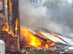 Recent rain worked in the Sperls’ favor as the fire in the shop, nestled in the trees, did not spread to the woods. Several feet away, the vinyl siding on the house looked like melting ice cream.