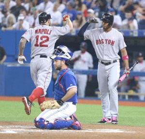 Mookie Betts led off the game with a triple and scored on Dustin Pedroia’s groundout. Later in the inning, Napoli connected on Dickey’s knuckleball for his third home run of the season.