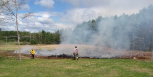 Mutual aid from Chesterville, New Sharon and Temple was called in to help the fire fighters dig their way through the burned pile of brush and stumps.