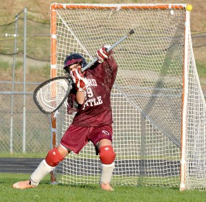 The goaltending position isn’t anything new for Vaillancourt, who spent part of the fall season as the girls’ soccer netminder. However, the sport of lacrosse is a completely new venture for the sophomore. Until this season, Vaillancourt had never played lacrosse in a competitive setting.