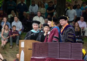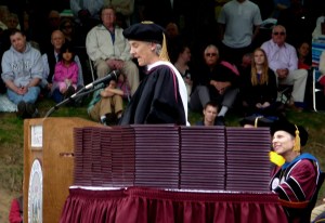 UMF President Kathryn Foster introduced Benoit Samuelson before awarding her an honorary degree of Doctor of Humane Letters for her significant contributions.