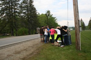 They stood along Route 142 in front of the school, holding signs that asked passers-by to take notice that their school was in the midst of troubled times.