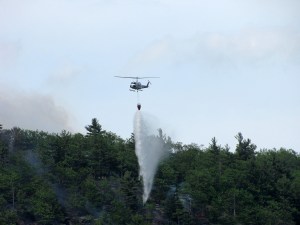 Firefighters battled the blaze for hours, both on the ground and from the air using a Maine Forest Service helicopter to drop water on the flames.