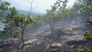 A Woodstock firefighter said crews were first sent out to the area just after 3 p.m. when smoke was seen rising in the area of Bucks Ledge.
