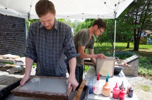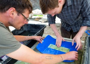 “We teach them the techniques of handmade papermaking using military uniforms and at the same time they’re deconstructing their experiences,” he said later. “We deconstruct the uniform and reclaim it and make it into something hard. That paper becomes a platform to share that experience.”