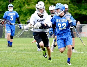 King is in a unique position. In addition to being the head coach of the Saints’ lacrosse team, he is also an assistant coach with the Lewiston boys’ hockey team. The Blue Devils and Saints have one of the fiercest and longest-standing hockey rivalries in New England.