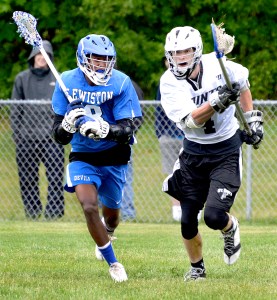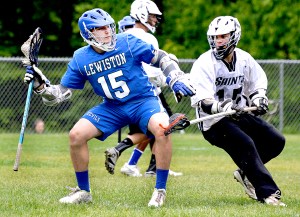 Griffin Wade pulled Lewiston within one with 3.4 seconds remaining in the first quarter, and Pat Racine netted the equalizer with 3:56 to play in the first half from five yards.