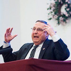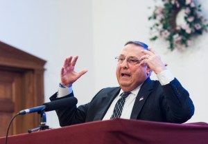 LePage also said he put in a constitutional amendment to eliminate income tax, but the Legislature won’t approve it. Democrats and some Republicans are making deals behind locked doors, he said. The Legislature is not working for the Maine people, he said.