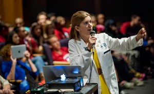 “I read ‘The Story of Medicine’ over and over,” she told students while the words “Do What You Love” appeared on a screen. She shared her list of tips to help them: