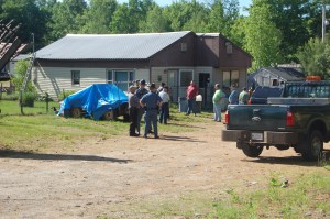 Eleven police officers from Jay, Wilton, Franklin County and the state stood by in case of trouble between town officials and members of the Pollis family and their supporters.
