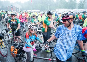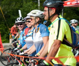 They joined more than 2,000 bicyclists who will attempt to pedal a 180-mile route from the parking lot of Sunday River Ski Resort in Newry to the Atlantic Ocean in Belfast.