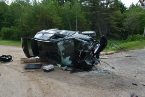 The Portland Press Herald reported (http://bit.ly/1etcwE7 ) authorities said 23-year-old Ashley McMullen, of Naples, was driving a 2012 Jeep Compass west on Route 302 in Casco Thursday morning when she hit the pole and rolled the vehicle onto its side.