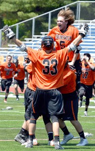 Brunswick never looked back. Behind five goals from Cam Glover and four more from Matt Brooks, the Dragons turned a a nail-biter into a more comfortable 13-9 victory over South Portland in the Class A title game.