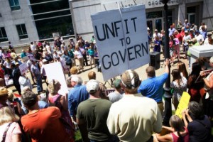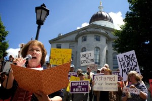 This has pushed criticism of LePage to a fever pitch. More than 10,000 people have signed a petition on the liberal MoveOn.org website calling for LePage’s impeachment, and the improptu anti-LePage rally at the State House — organized by two retired lawyers — drew some 200 people Tuesday.