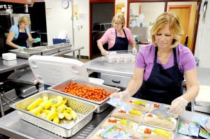 “Yesterday we made close to 600 lunches,” said kitchen manager Cindy Baril and she and three other workers wrapped food on trays about to be loaded into a van for delivery. They start their day at 6 a.m. The numbers of sites and students served are growing. “We’re busy,” Baril said. They plan to serve more this year.