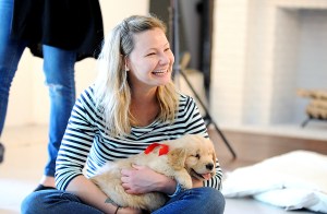And, most importantly, a pair of fluffy 7-week-old golden retriever puppies — Prada and her brother, Gunther — awaited their debut, complete with red bows around their necks.