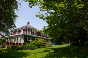 Flags from Maine and Denmark waved in the breeze above the Montgomery Road house where Eric Jorgensen lived, and a blue Ford station wagon was parked in the driveway. A hanging basket of bright flowers adorned the porch, and a sign by the driveway identified the house as “Peony Farm.”