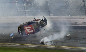 DAYTONA BEACH, Fla. (AP) — A horrific last-lap accident that left drivers fearing for Austin Dillon’s safety muted Dale Earnhardt Jr.’s victory in the rain-delayed race at Daytona International Speedway.