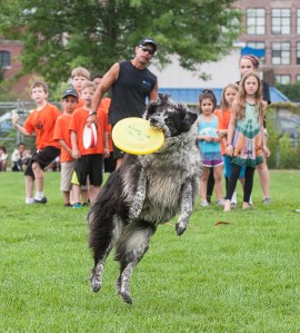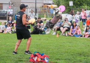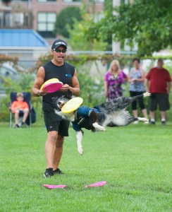 Thanks to misty weather that almost but didn’t quite turn into rain, Piazza’s Flying High Frisbee Dogs had plenty of room to run, leap, flip and catch flying discs — much to the delight of more than 120 spectators.