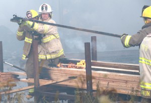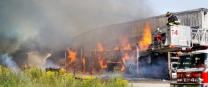 “It wasn’t earth-shaking, but you felt it,” said Emery, who was in his house at 40 Mechanic Falls Road with his daughter when the fire started. Emery said he saw flames coming out of the back of the warehouse almost twice the height of the roof.