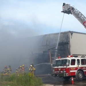 The fire appeared to have started outside, at the northwest corner of the central manufacturing area. The metal building, which measures 200 by 400 feet and is used to manufacture modular housing, was initially reported as fully engulfed in fire, according to radio traffic, and the sprinkler system had engaged.