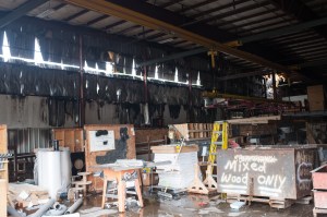 The fire burned much of the wood stored there — the company had just taken delivery of several units of wood — and the lean-to structure. It also warped the metal siding on the north end of the building.