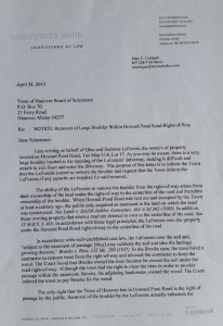 Suzanne LaForest strongly disagreed with her neighbors’ interpretation, and said the town has been clearly advised on the question of ownership. “We’re paying money left and right for something that’s mine,” LaForest said, to prove ownership. “I shouldn’t have to do this. I should never have had to do this.”
