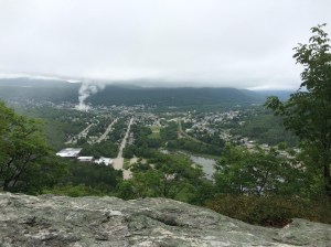Source to Sea hiked Mt. Jasper near Berlin, N.H., Wednesday. The hike was led by Sally Manikian from the Appalachian Mountain Club. The rain ceased just in time for the hike to begin, and participants enjoyed beautiful views of the Berlin valley below the summit while learning about the native American Indians who traveled the Androscoggin and mined rhyolite, a form of jasper, for tools and weapons from atop Mt. Jasper. There are interpretive signs with a lot of information about the Native Americans in New Hampshire along the trail.