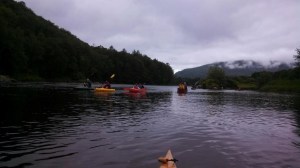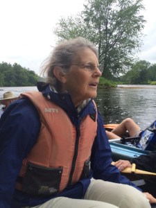 Cathy Johnson of the Natural Resources Council of Maine discussed the proposed North Woods National Park while participants paddled from Gilead to Bethel on Saturday. Jeff Parsons of Bethel Outdoor Adventure served as the guide for group. The rain once again stopped just as paddlers departed Gilead and didn’t return until after they were off the river.