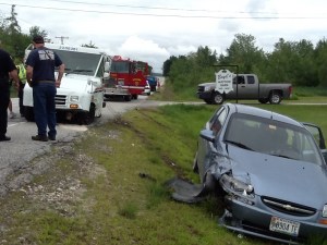 MECHANIC FALLS — A mail delivery truck and a car collided around 11 a.m. Saturday on Route 11 in front of Boyd’s Auction Barn.