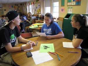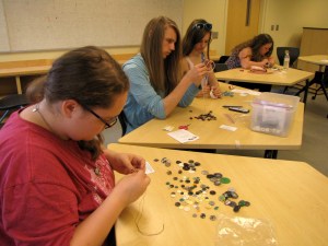 Some students were learning to make bracelets for the Buttons For Babes program which raises funds to help local children. Trish Wurpel, program coordinator for the Tri-Valley United Way, answered questions as students sewed colorful buttons on to wrist straps creating unique bracelets.