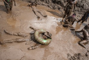 Two teams played tug-of-war over a mud pond to Waylon Jennings “Good Ol’ Boys.”
