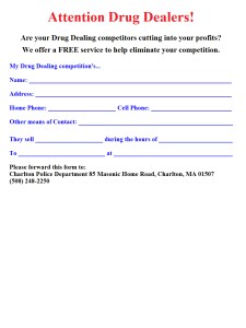 The Charlton Police Department made a tongue-in-cheek post on their Facebook page Friday offering drug dealers the chance to provide information on their competitors.