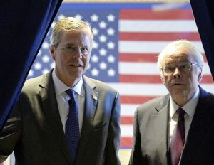 Beating back IS there will require the removal of that country’s president, Bashar Assad, Bush said. To do so, he said he would aim to unite the moderate forces fighting IS in that country and for U.S. troops to “back them up as one force.”