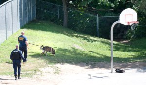 The suspect ran toward the downtown and took a left on Pierce Street, Olhaye told police. The suspect was last seen going into the woods in that area.